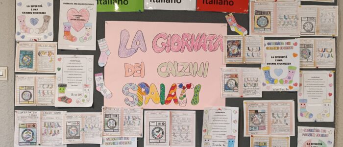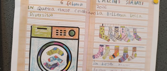 Nel corso della giornata le classi hanno affrontato il tema con attività adatte alle diverse età. I bambini della pre-scuola hanno realizzato una bacheca decorata con calzini variopinti, trasformandola in un piccolo manifesto visivo della diversità. Nelle altre classi si è lavorato attraverso poesie, racconti, visione di cortometraggi e momenti di dialogo, creando occasioni di riflessione condivisa e partecipata.